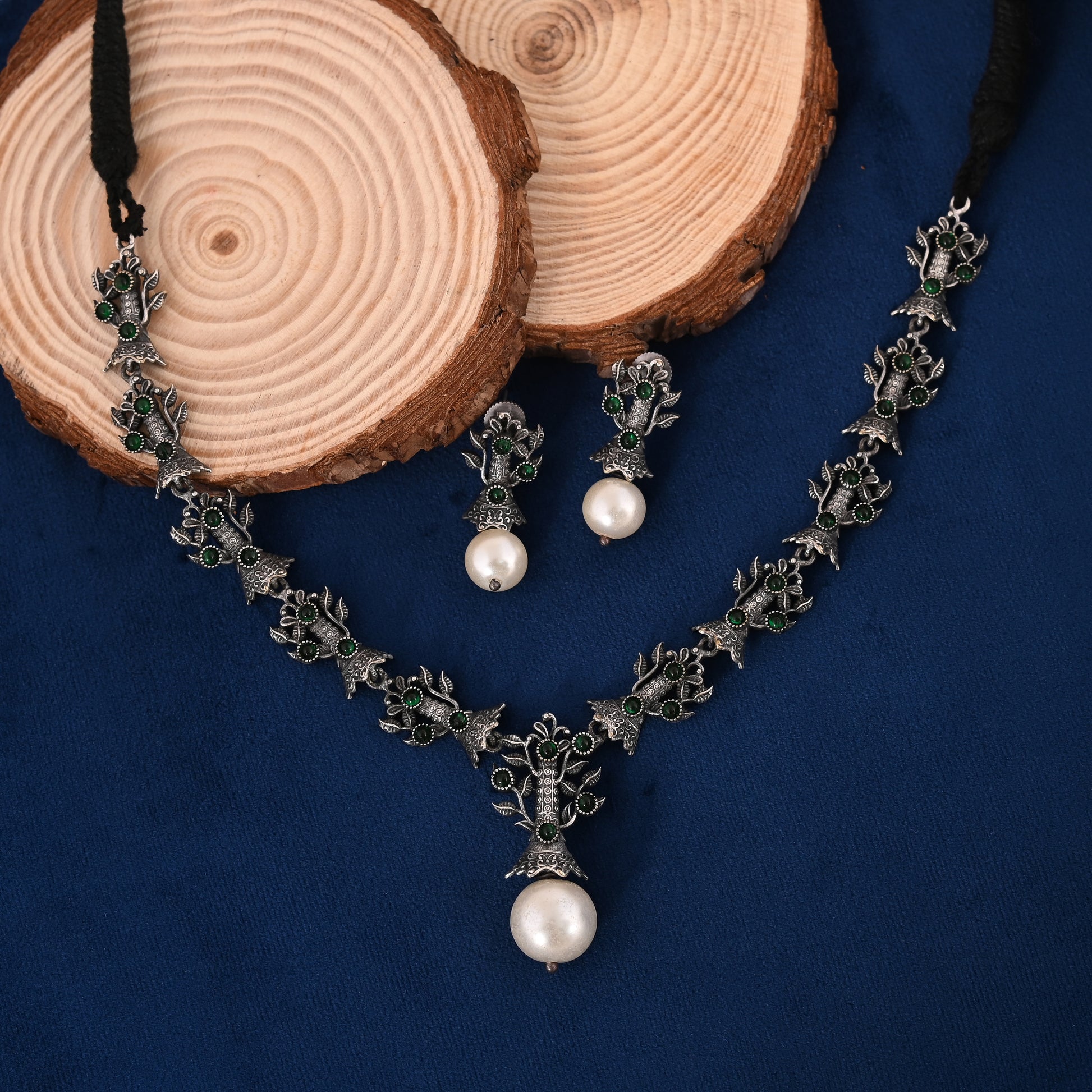 Since 2022, TANUSHA JEWELS Prevail to Provide Good Quality Products to customers , We Constantly Think About our Customer And Their Preferences to Design the Jewellery Piece That Carry Out the Finest Us . We Assure The Top Quality Experience In Making Our Jewels 99.9% Skin Friendly . ETHNIC NECKLACE Jewellery Set . Best When Paired With Indian Or Indo Western Attire . Dull Black Silver Polish Makes It More Beautiful And Antique. Whether You are Attending a Party or Hosting An Event , This Ethnic Jewellery Piece From TANUSHA JEWELS Is Something you Need To Take Your Look in Next Level .