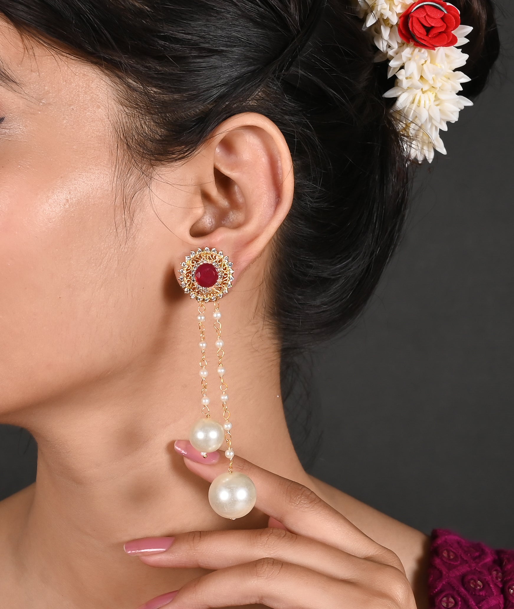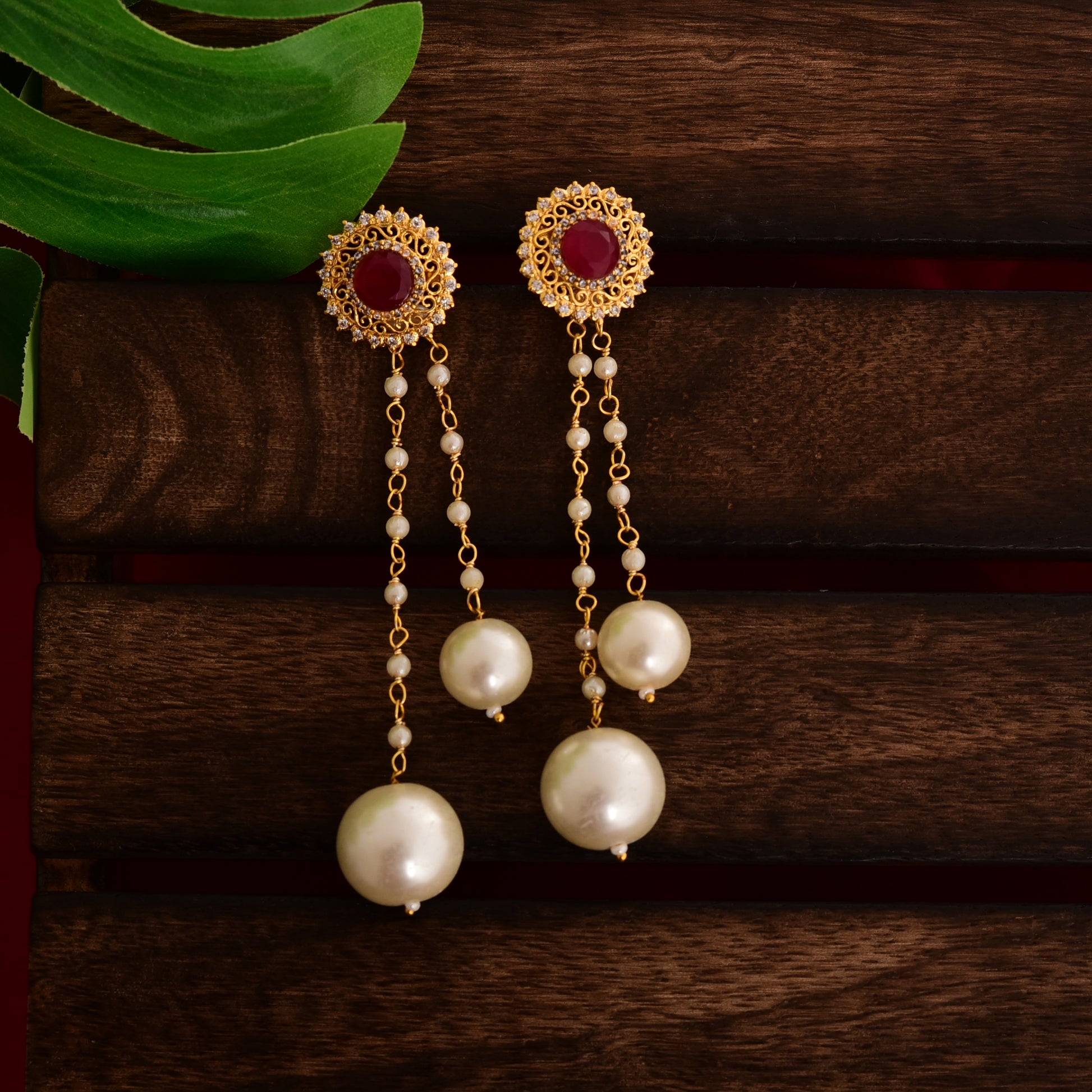 Tanusha Jewels Unique Gold Plated 2in1 Drop Earings For Girls & Womens