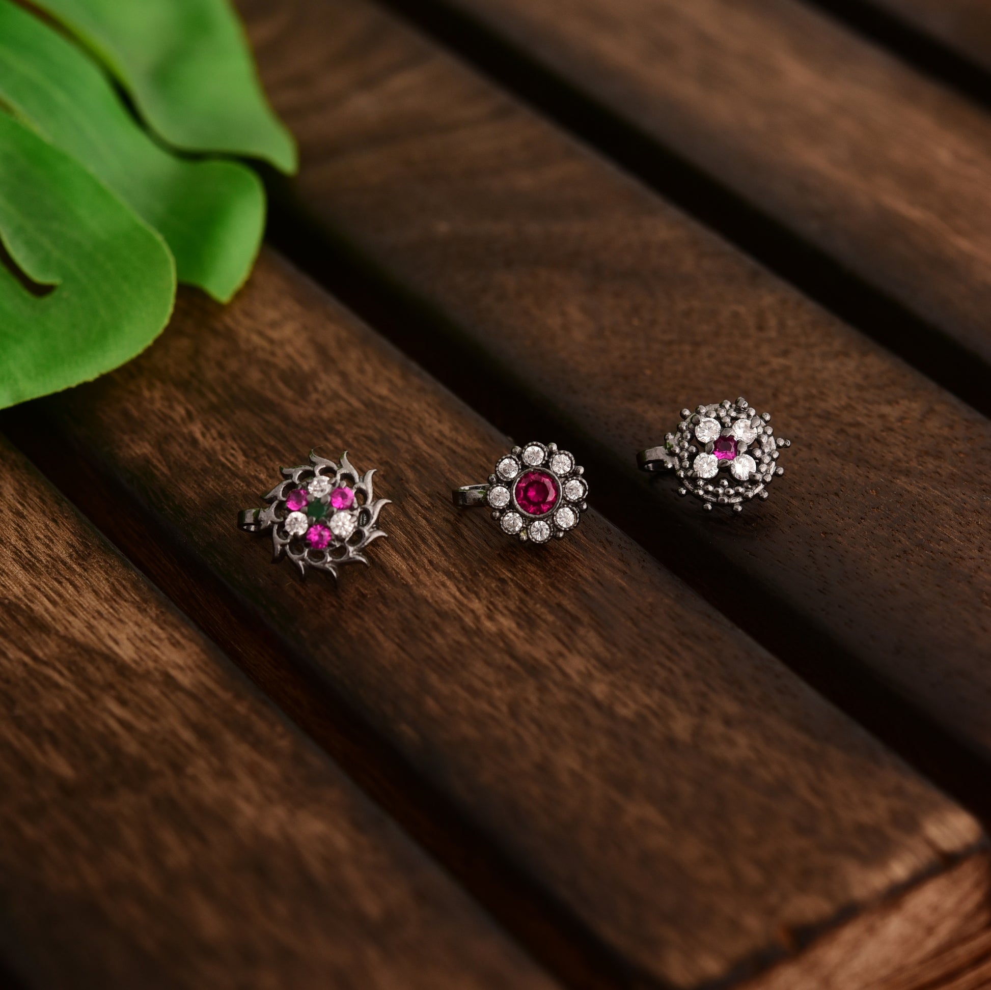 Traditional oxidized nose Pin Nath will Enhance your look. An easy-to-wear design that is available in different shapes. Clip On Oxidised nose pin without piercing for weddings , Parties , engagement , Festivals . An Indian Beautiful Lady Knows the Importance of Nosepin in Their Daily Fashion. . This Nose stud pack is for those Girls women or Ladies who are updated with the Trending Fashion. These Handcrafted Oxidized German Silver Plated Handmade Nose clips, Nose Pin, Nose Rings & Stud without piercing for women are Adjustable and Easy To wear.